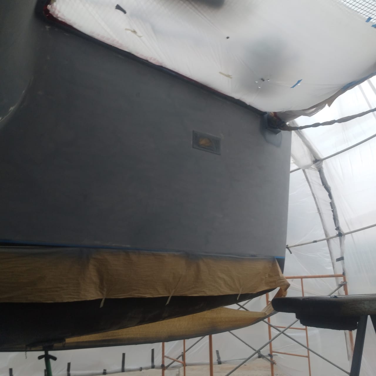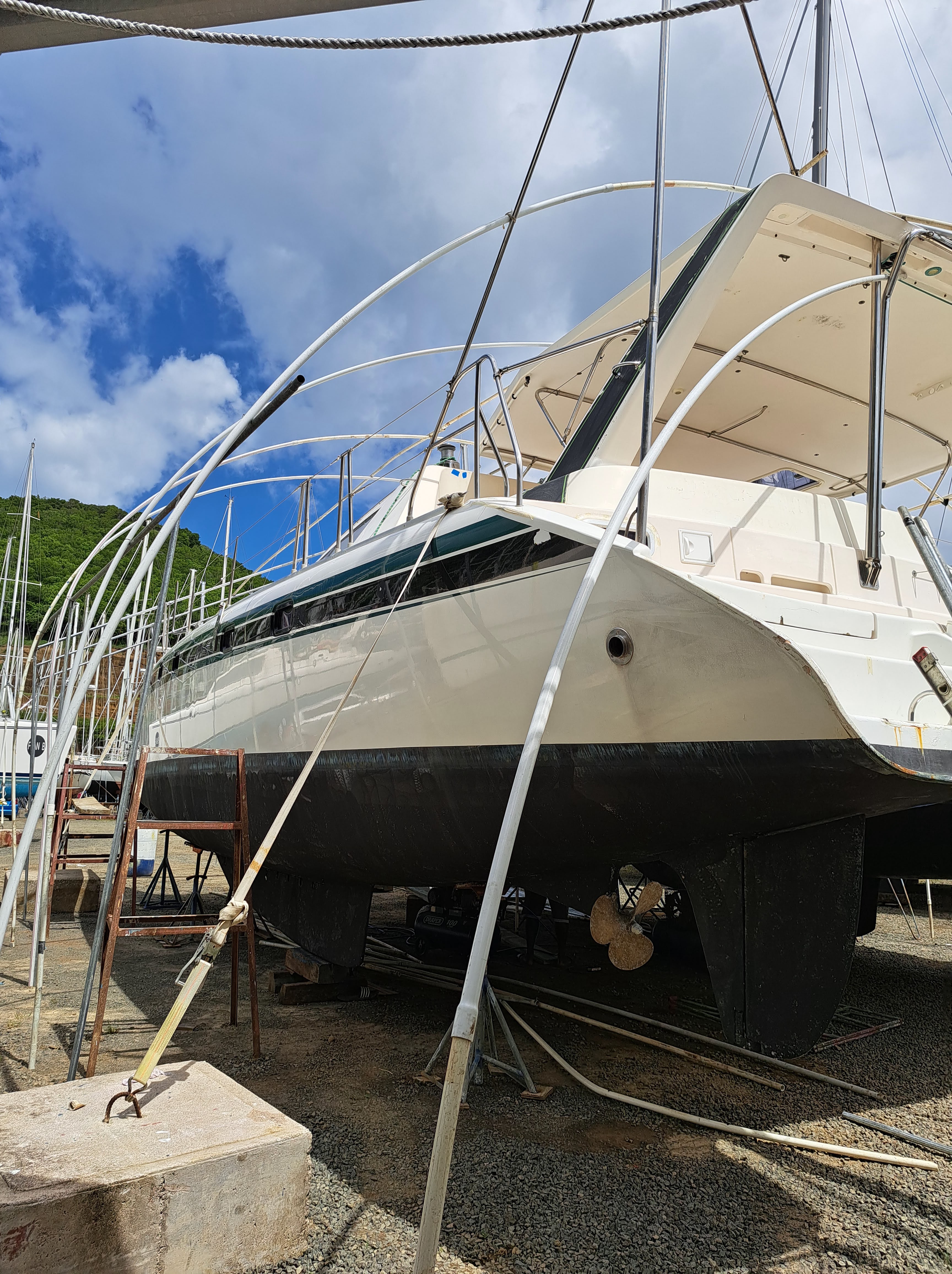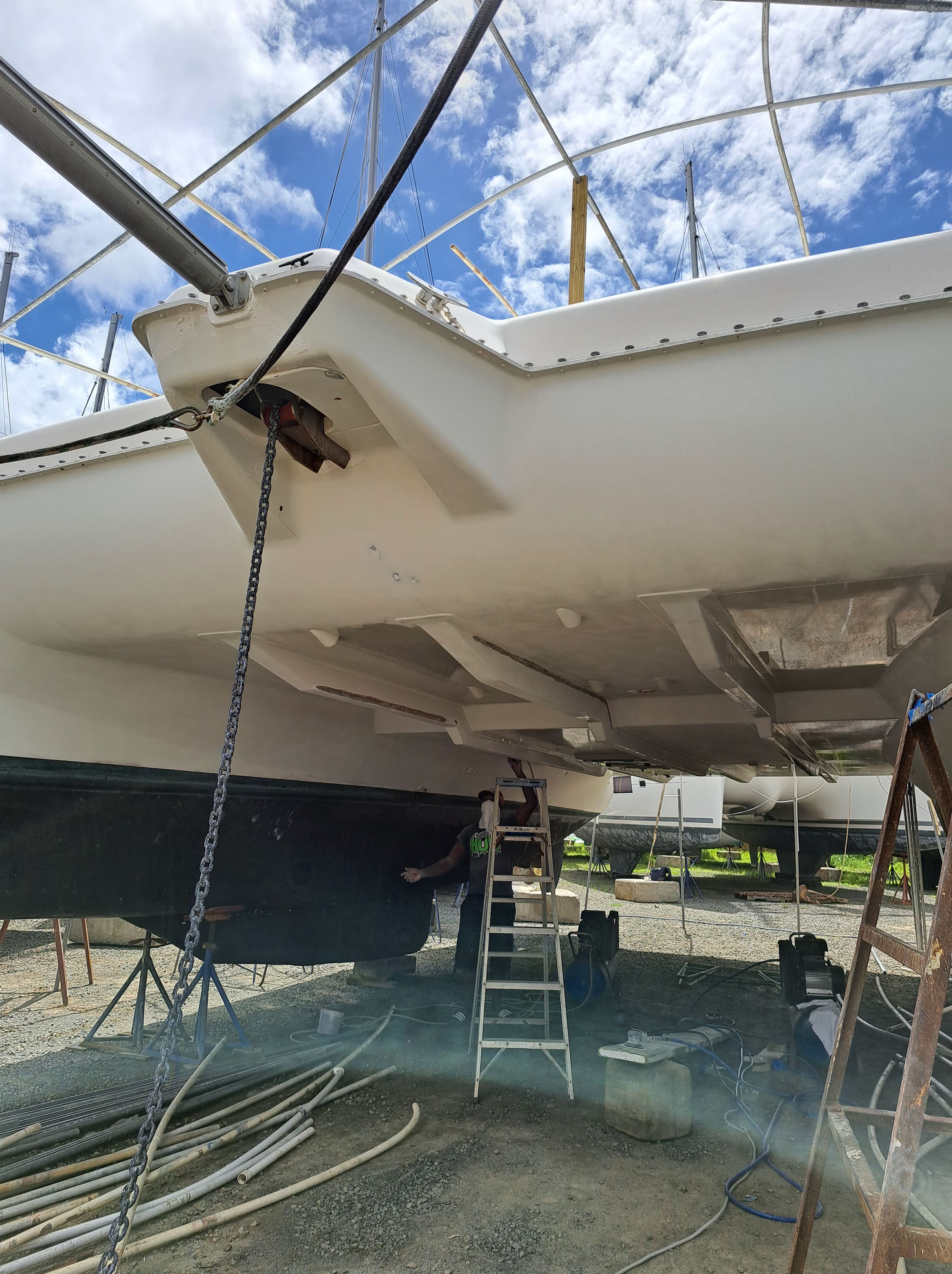 SV Mahasattva -Topsides and Dinghy Lift Painting